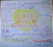 | ジャスムヒーンさんといえば,十数年食べ物飲み物をほとんどとらず,光(プラーナ)で生活されているという不飲不食のイメージが強いですが,今回のワークショップはご本人もおっしゃっていたように,もう食べる食べないの問題にはフォーカスせず,この惑星のアセンションをスムーズにすすめ,皆で地上天国を創造するために,いかに愛と平和の奉仕をしていくかということが焦点になっていました。ご参加者頂いた方々は,愛あふれる癒しのヒーラーの方が多かったように思います。ワークショップでは,次元フィールド科学等,ジャスムヒーンさんが未来からダウンロードしてきた情報,それぞれのうちにある神性(キリスト意識)を引き出す瞑想,ご自身のスピリチュアルな経験に基づくお話など,とても盛りだくさんでしたが,愛の根源とつながり,無限の愛を放射されている彼女と一緒の時間空間を共有できたことが何よりの幸せでした。ジャスムヒーンさんをはじめ,ご参加頂いた愛あふれる方々,主催してくださったナチュラルスピリットの方々に心から感謝しています。 |