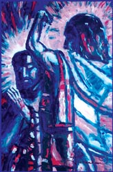 「女戦士」はジャスムヒーンの1997年の作品です。カンバスにアクリル絵の具で描かれました。